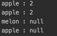 그리고 다시 apple을 get 하면 데이터가 지워진 것을 확인할 수 있습니다.